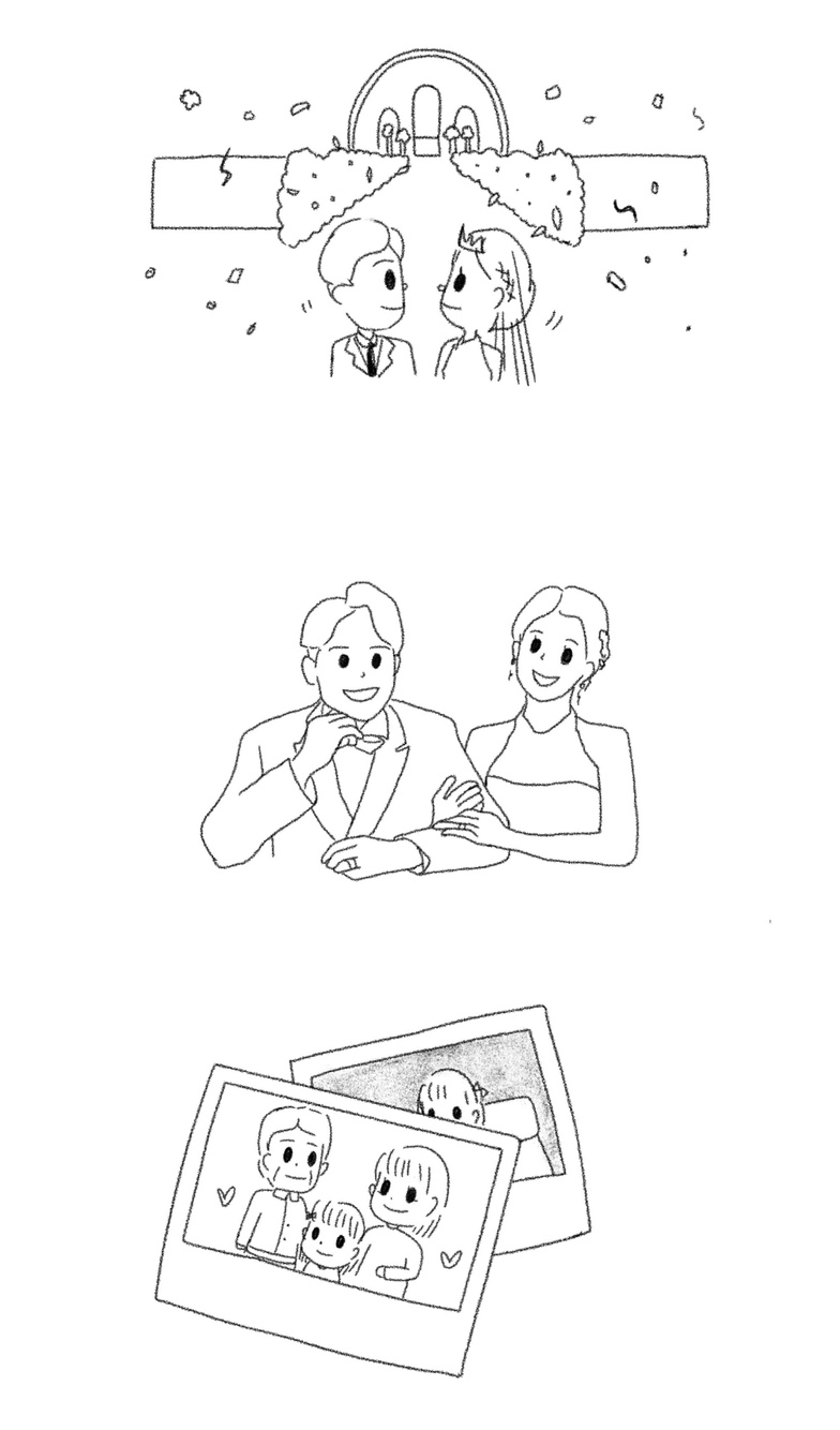 우리의 연애사와, 결혼을 하게 된 내용들과 앞으로 살면서에 대한 내용들을 넣었습니다.