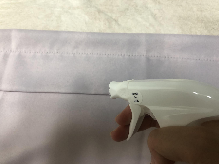 1. 암막커튼 같은 두꺼운 소재의 커튼은 분무기 물을 과할 정도로 충분히 적셔주셔야 커튼이 상하지 않아요.