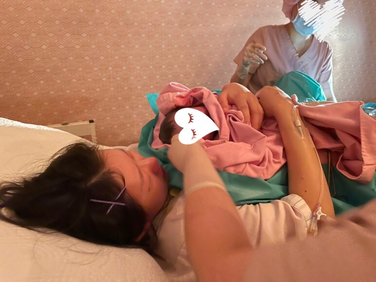 Anyway ! 진행은 굉장히 빠르게 되었고, 중간중간 내진도 본 결과 밤 10시 반쯤 놀래시면서 자궁문 다 열렸고 아기도 많이 내려왔다고 하신,,, 급하게 원장님 콜 하고, 힘주기 3번 만에 아가를 만났습니다. ♡