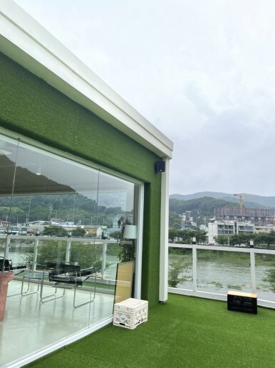 맛있는 음료 그리고 강아지들에게 인기좋을 거같은 테라스 공간.ᐟ .ᐟ