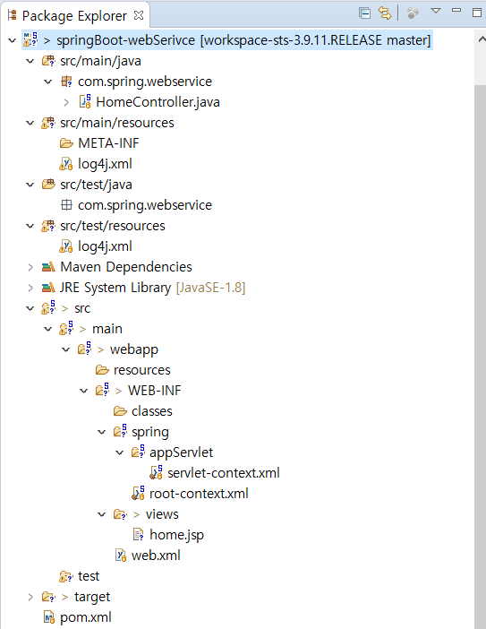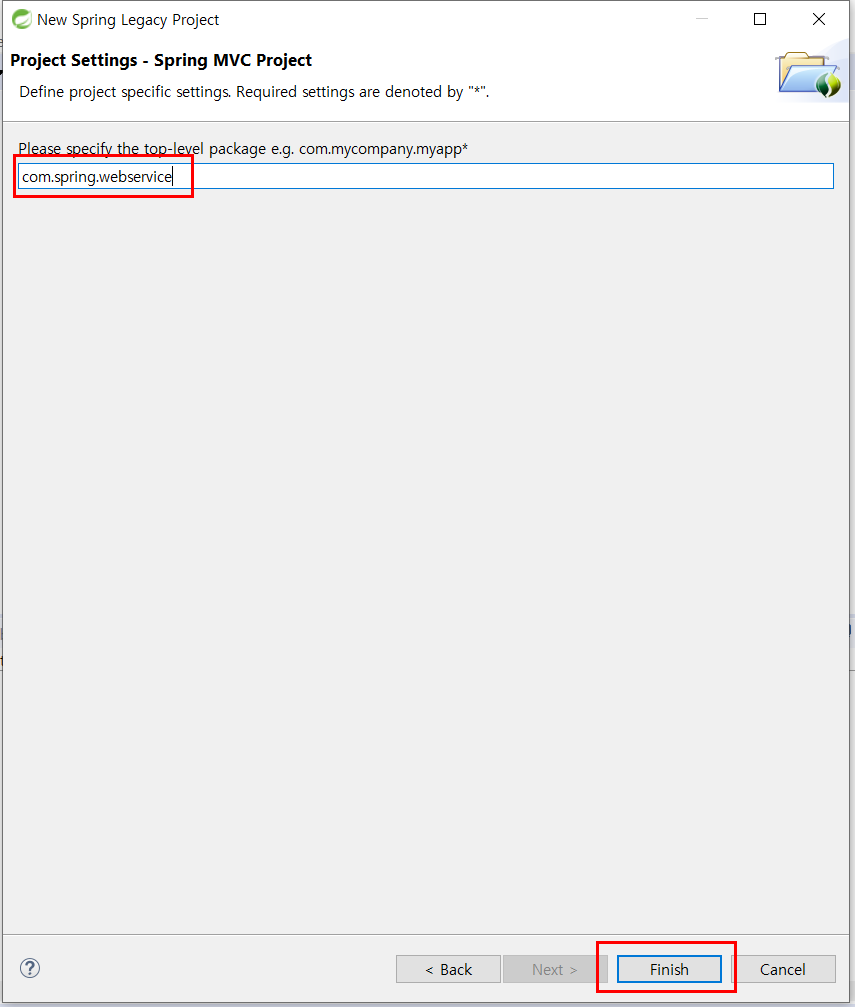 여기서는 'com.spring.webservice' 라는 패키지명을 사용하도록 하겠습니다.