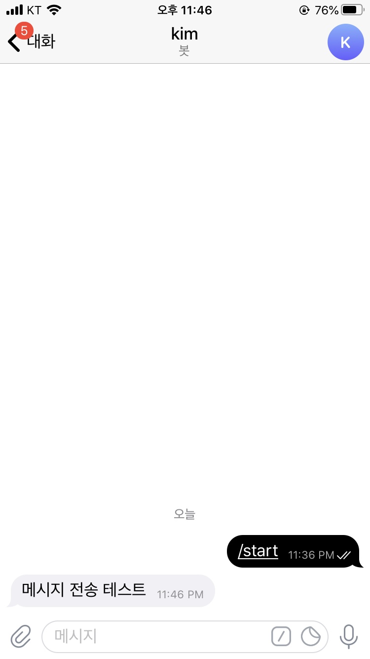 telegram.funcTelegram();7. 테스트 확인