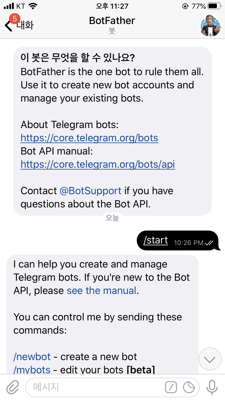 1. @BotFather 호출