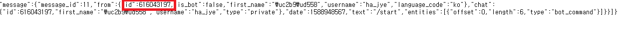 여기서 id에 입력되 있는 9글자가 chat_id 입니다.