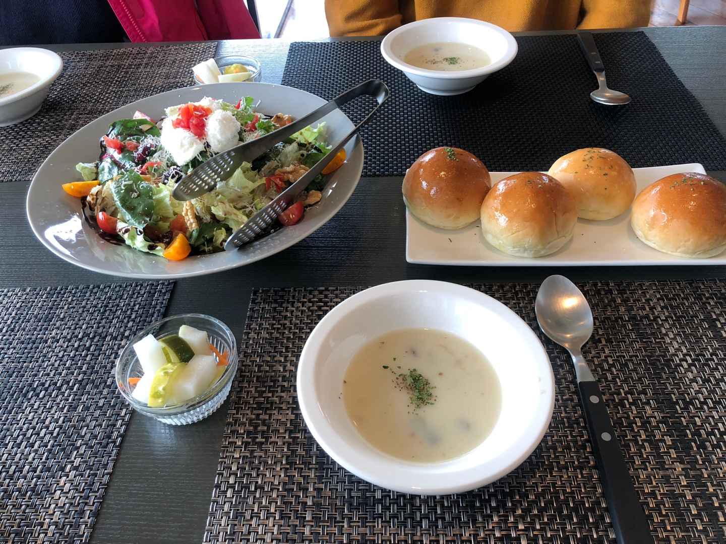 요렇게 식전빵과 스프와 샐러드가 나왔습니다 :)