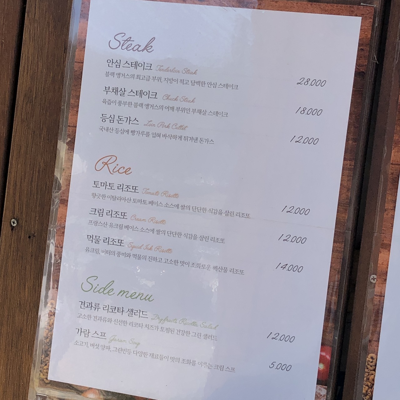 뒷장에 와인도 있었으나, 저희는 와인을 안마셨기 때문에 찍지 못했습니다ㅠ.ㅠ