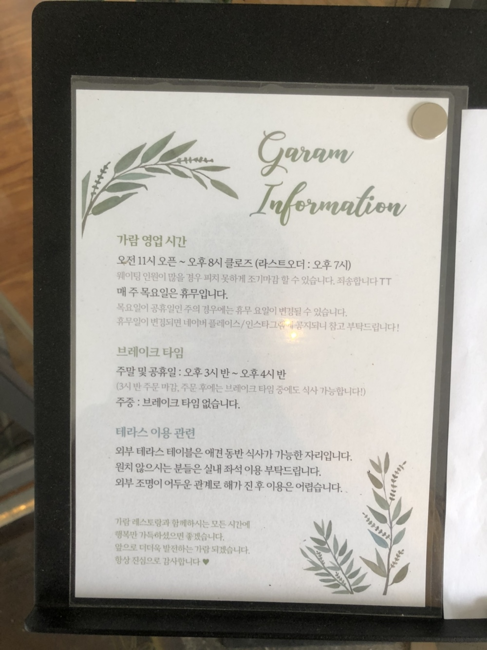 분위기 좋은 '가람 레스토랑'에서 소중한 사람들과 드시면 좋을 것 같아서 공유했습니다.