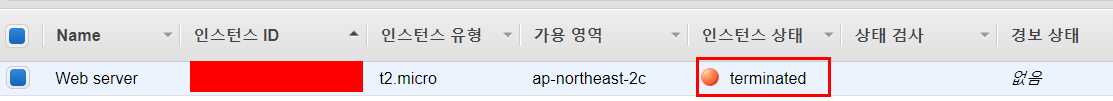 여기서 조금만 기다리면 빨간색 버튼으로 'terminated' 상태가 변경되고,
