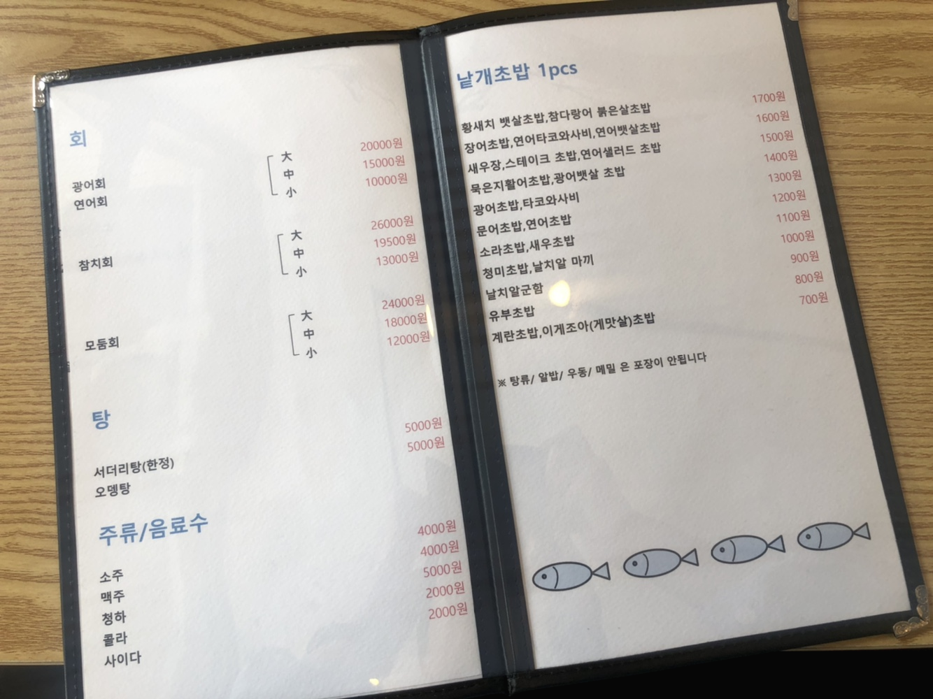 초밥의 길 메뉴는 요로코롬 있습니당.