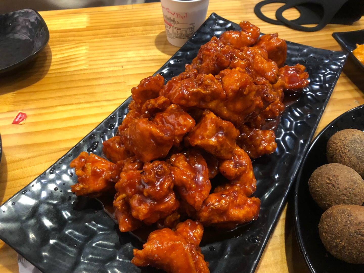 까르보불닭 치킨 순살과 더블 치즈볼을 주문했어요.